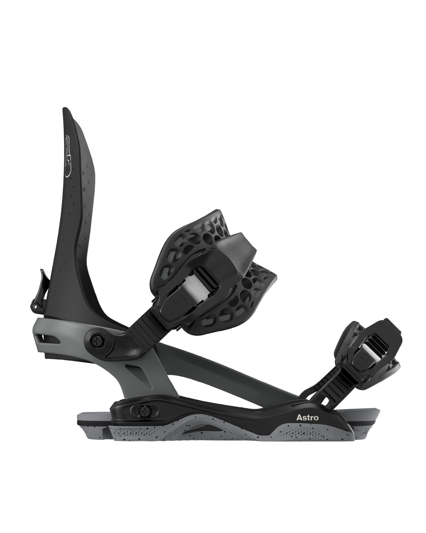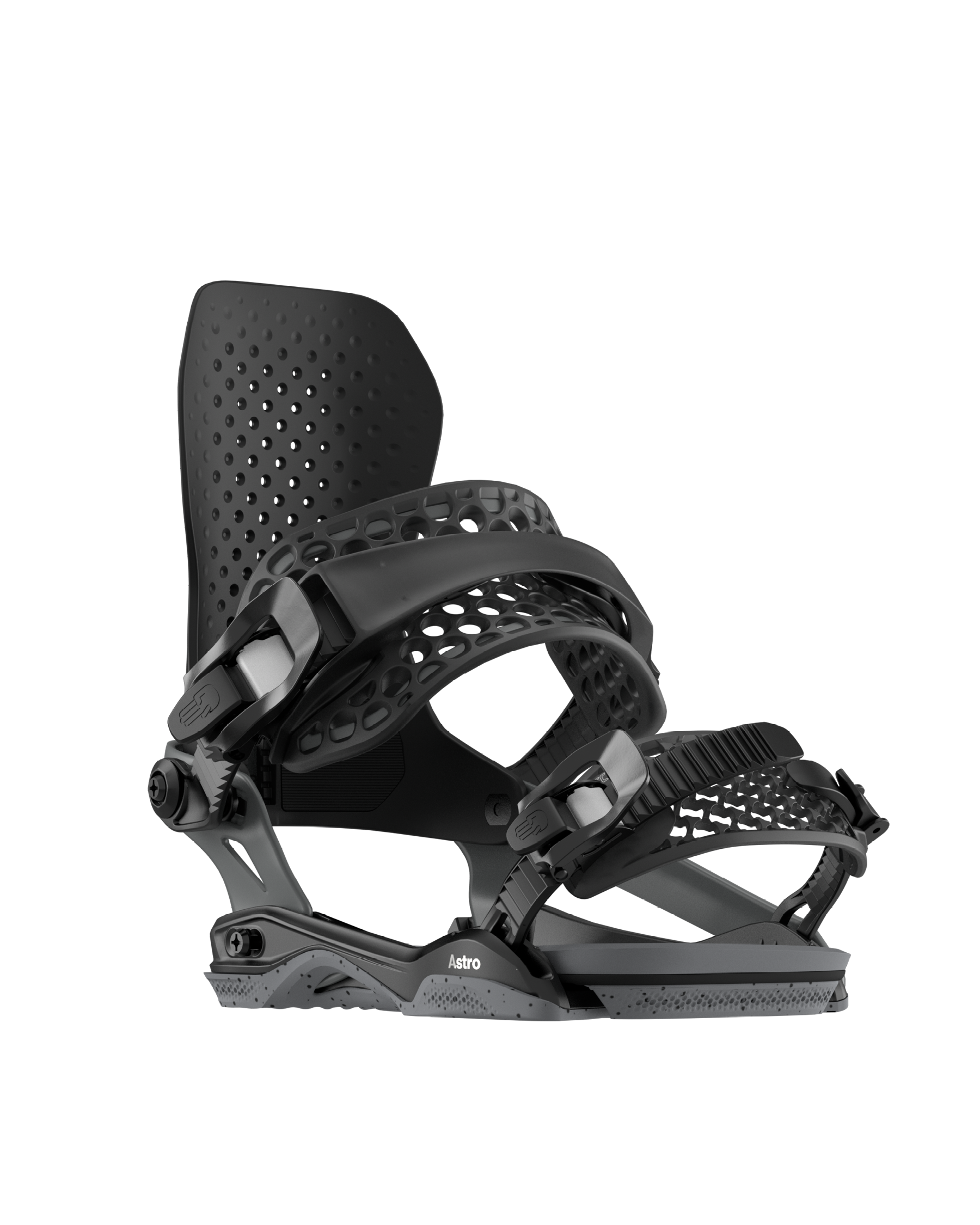 The Astro AsymWrap is a superior binding for aggressive all-mountain riding. Built on the same sturdy aluminum frame as the Atom, we've amplified the flex with a perforated Nylon composite FullBack, ensuring superb heelside control and robust support during big landings. The AsymWrap chassis offers uncompromised power without sacrificing your ability to fine-tune your style.