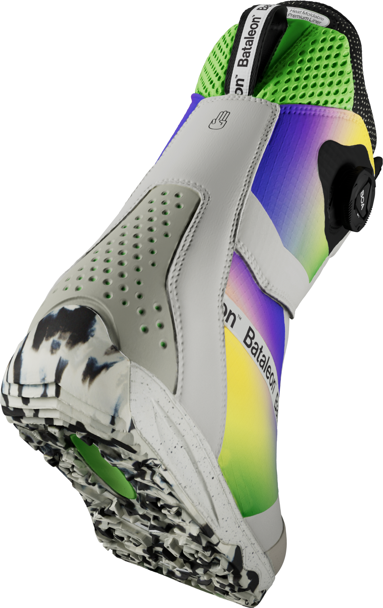 Future Flex Construction  Long lasting durability meets flexibility. Bataleon's seamless construction guarantees they can withstand the toughest terrains and conditions. The molded toe box and back stay offer superior protection and support, allowing you to conquer any challenge that the mountain throws your way. The articulated cuff promotes a natural range of motion, ensuring your boots move with you, enhancing your riding experience.